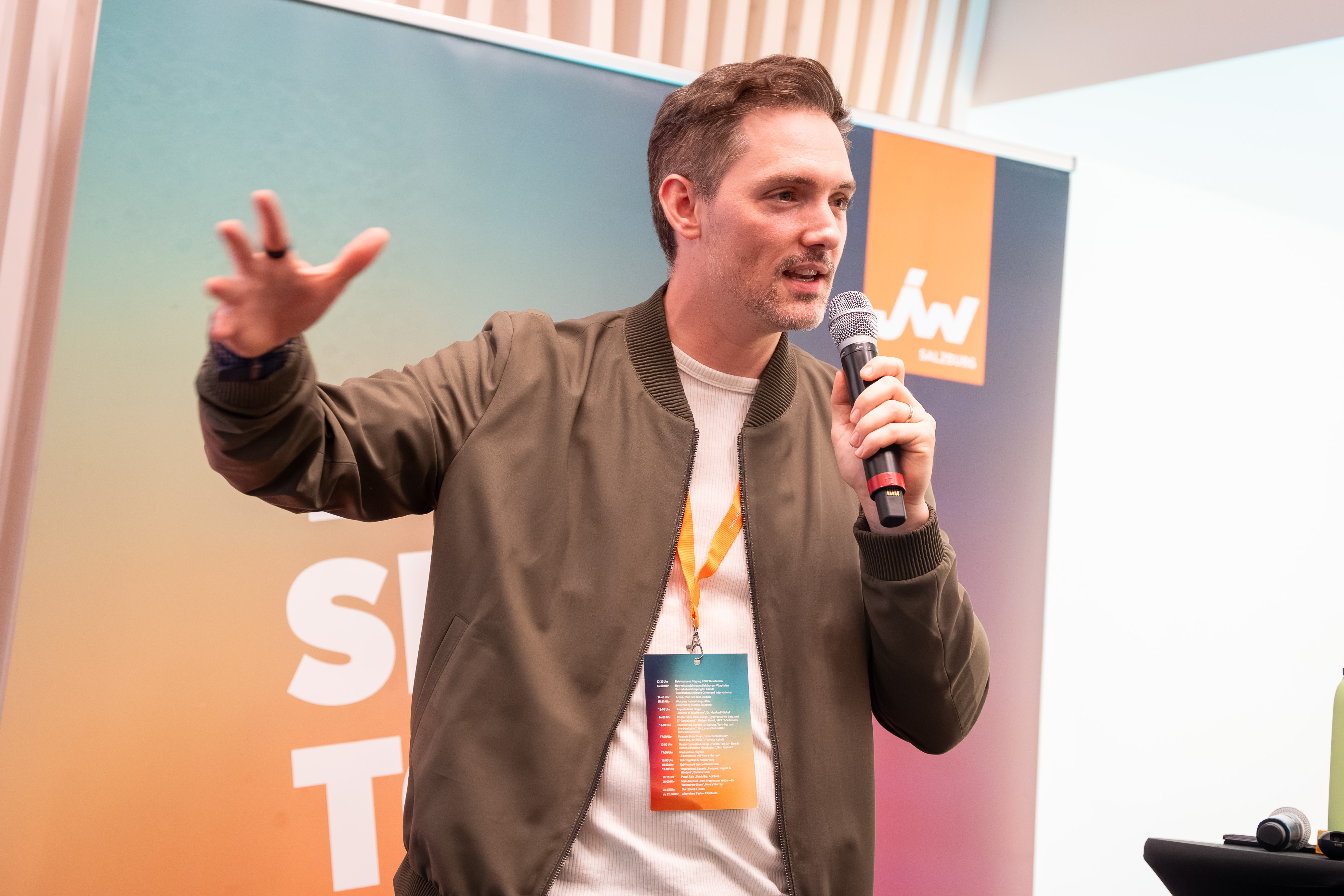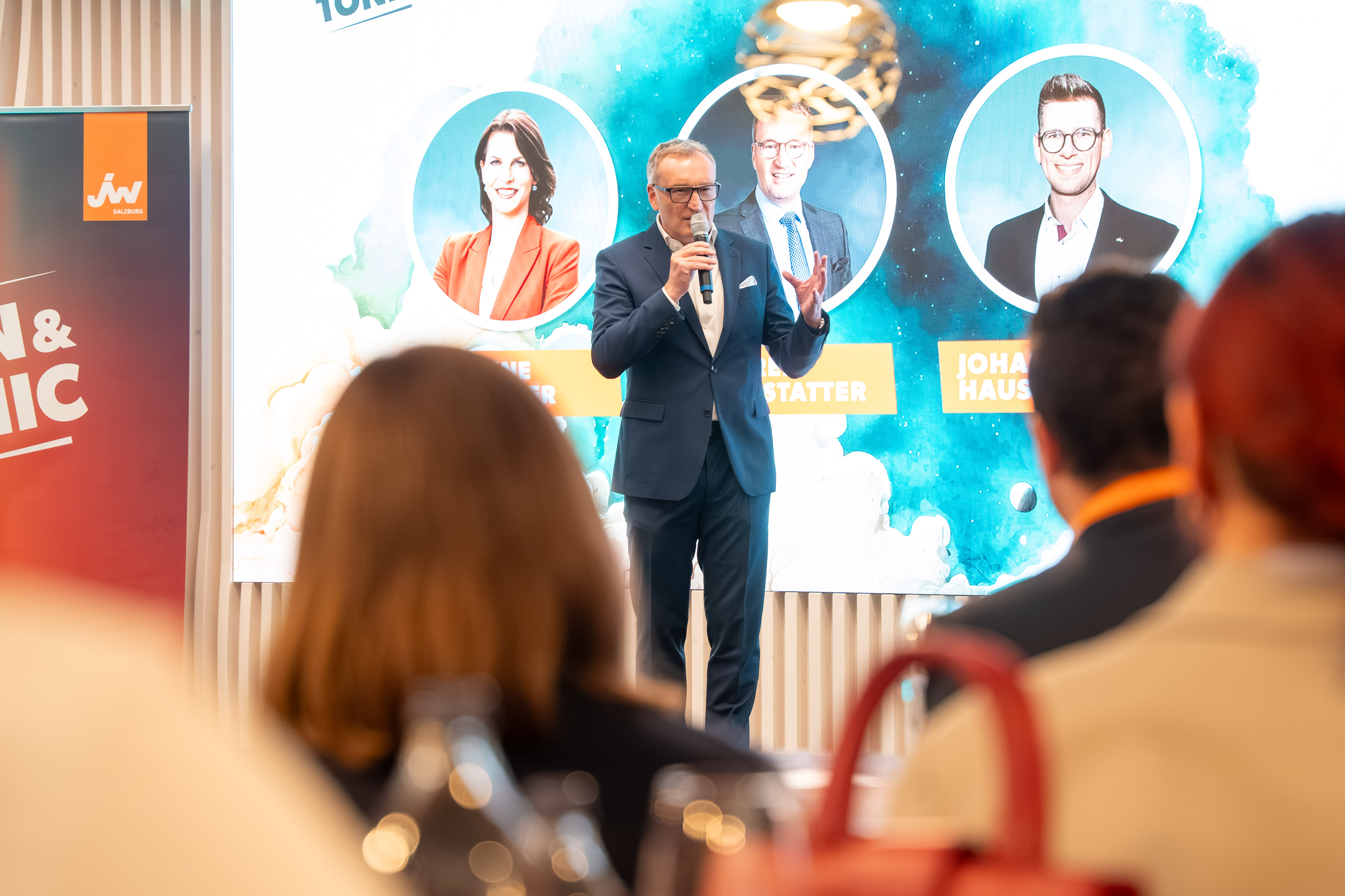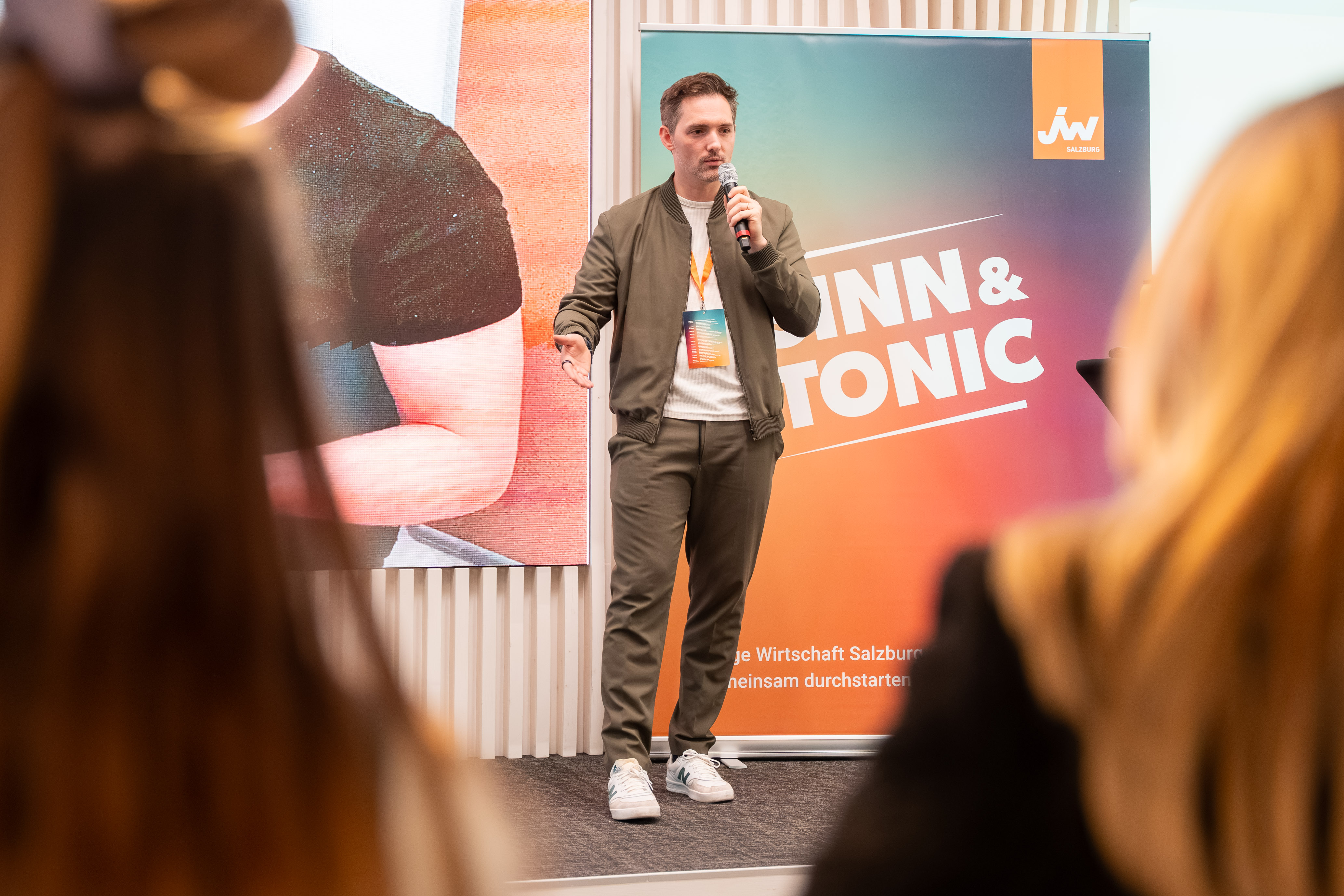 Der Panel Talk „Think Big. Act Bold.“ mit Stefan Klinglmair (Biogena), dem Fotografen Marc Stickler, Sabine Pongruber (WEME Global Salzburg), Johannes Wigand (Live-Voice) sowie die Keynote „Purpose, Impact und Mindset“ von Speakerin und Coach Daniela Fuks waren weitere Höhepunkte am Jungunternehmertag 2025.