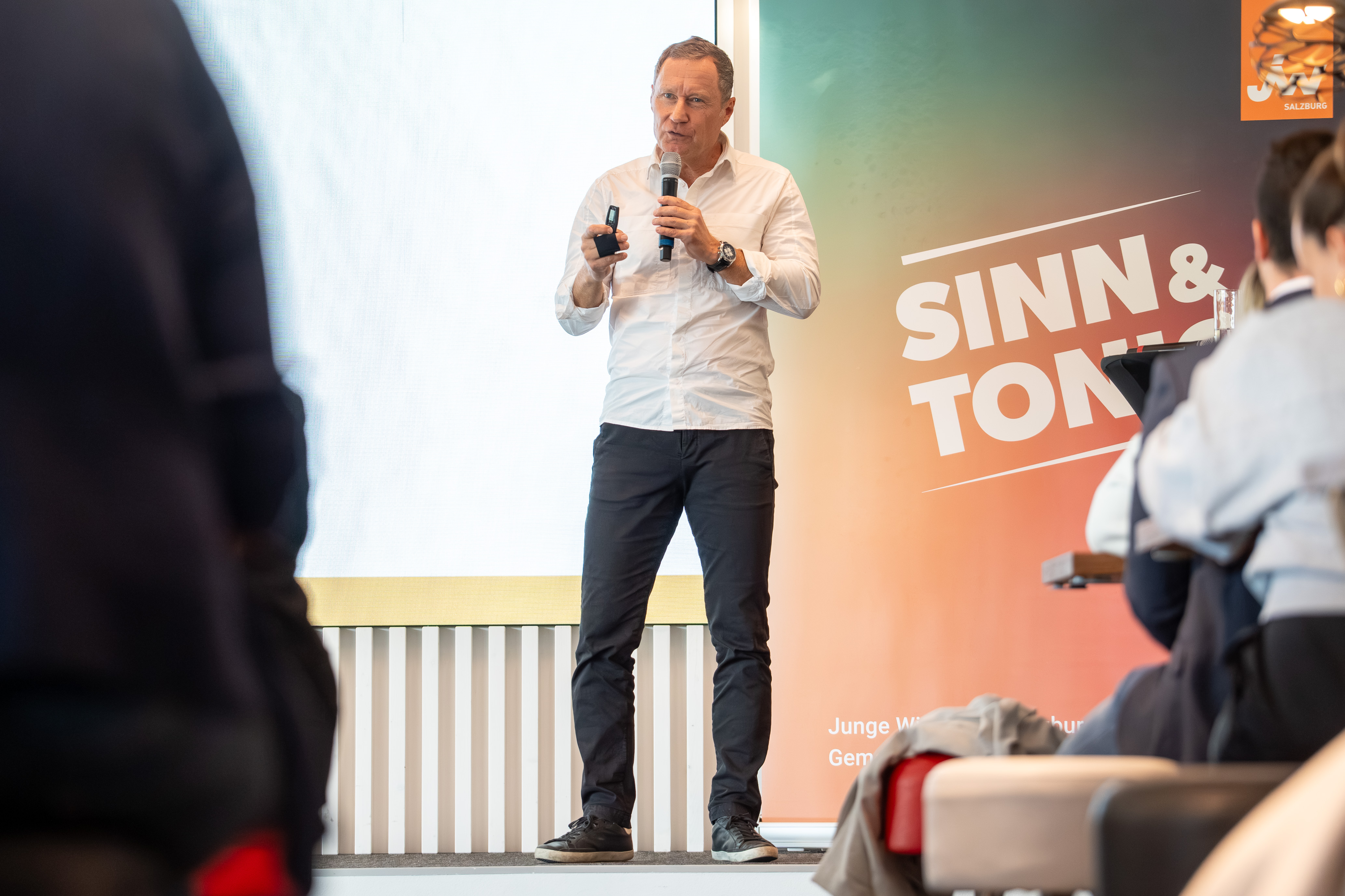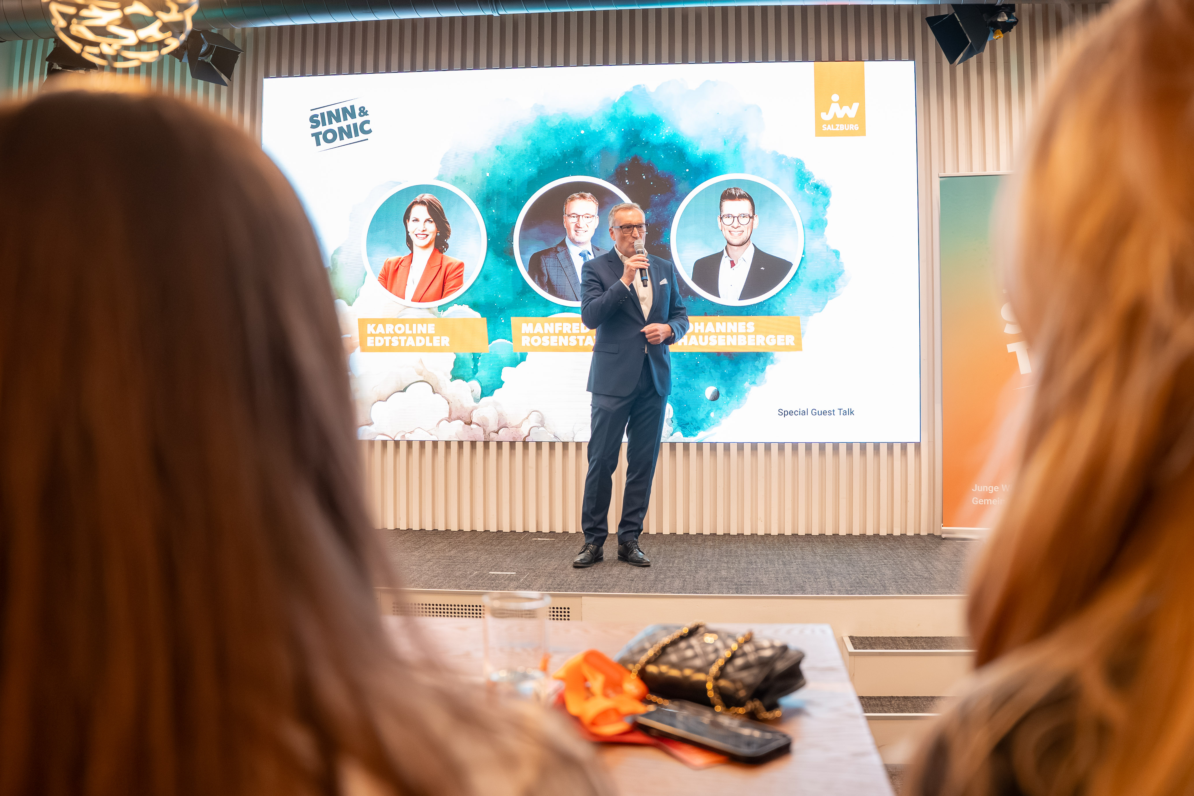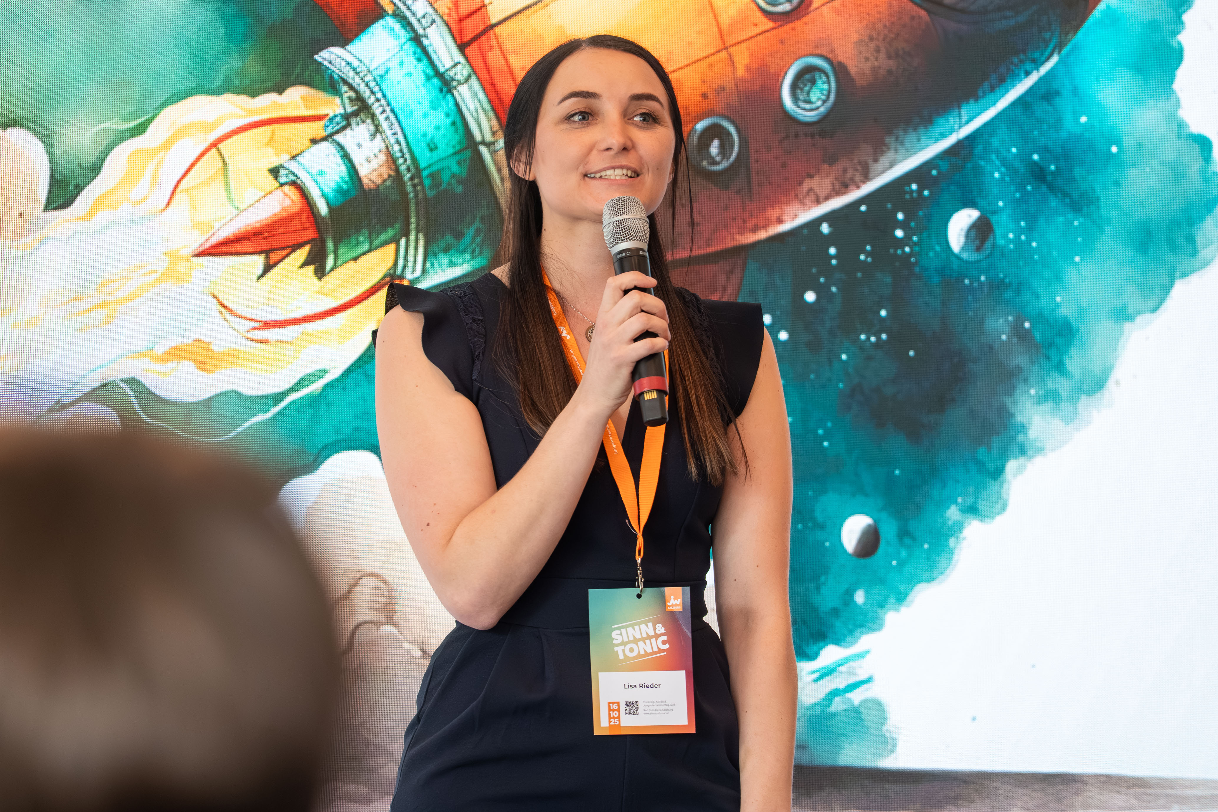 Der Panel Talk „Think Big. Act Bold.“ mit Stefan Klinglmair (Biogena), dem Fotografen Marc Stickler, Sabine Pongruber (WEME Global Salzburg), Johannes Wigand (Live-Voice) sowie die Keynote „Purpose, Impact und Mindset“ von Speakerin und Coach Daniela Fuks waren weitere Höhepunkte am Jungunternehmertag 2025.