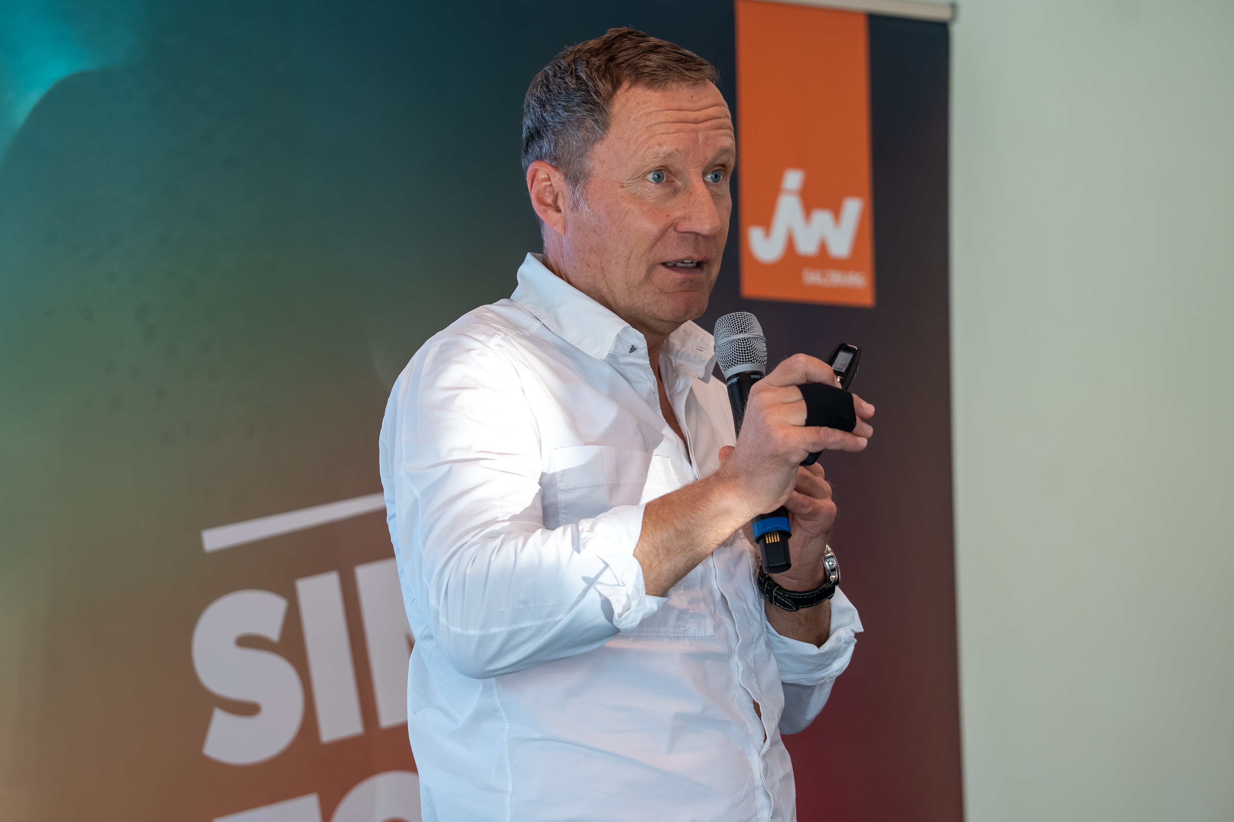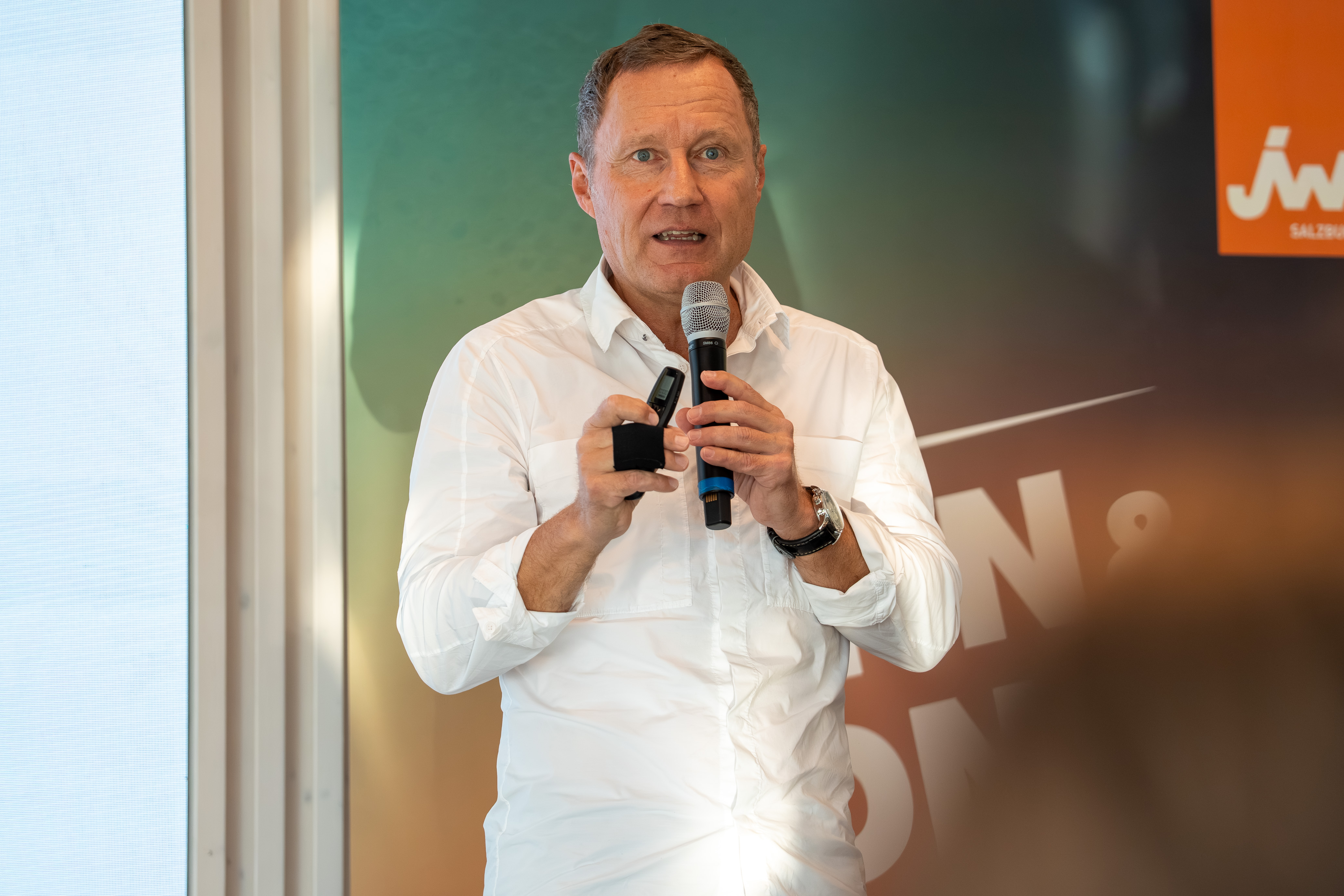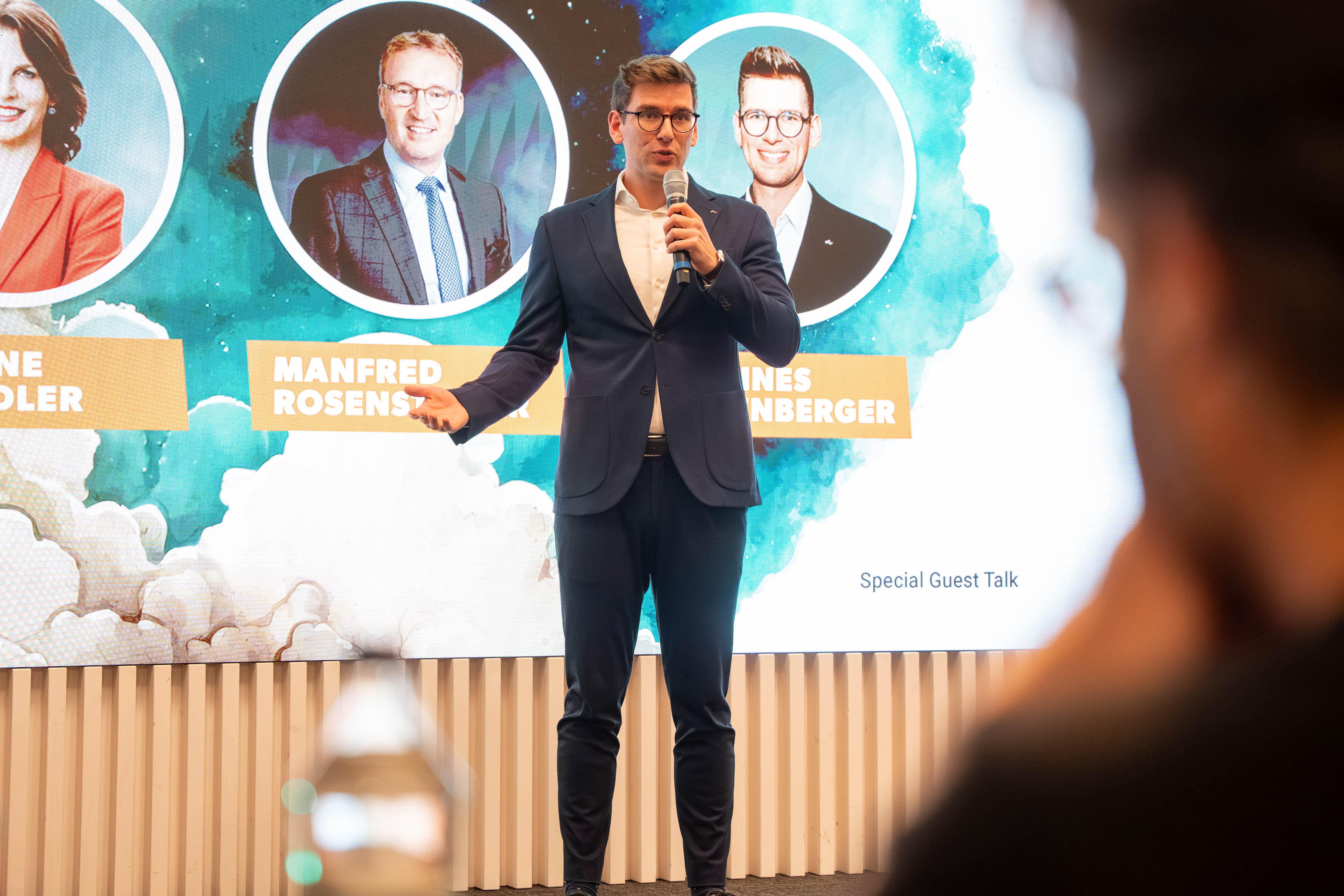 WKS-Vizepräsident KommR Manfred Rosenstatter ermutigte die Teilnehmer, auch in wirtschaftlich herausfordernden Zeiten an ihren Visionen festzuhalten: „‘Think Big. Act Bold.‘ – dieses Motto verlangt Mut, Strategie und Leidenschaft. Deshalb sind wir heute in der Red Bull Arena am richtigen Ort.“ Er unterstrich zudem die Bedeutung von Unterstützung durch WKS, Politik und etablierte Betriebe, „damit junge Gründer spüren, dass sich Unternehmertum lohnt“.
