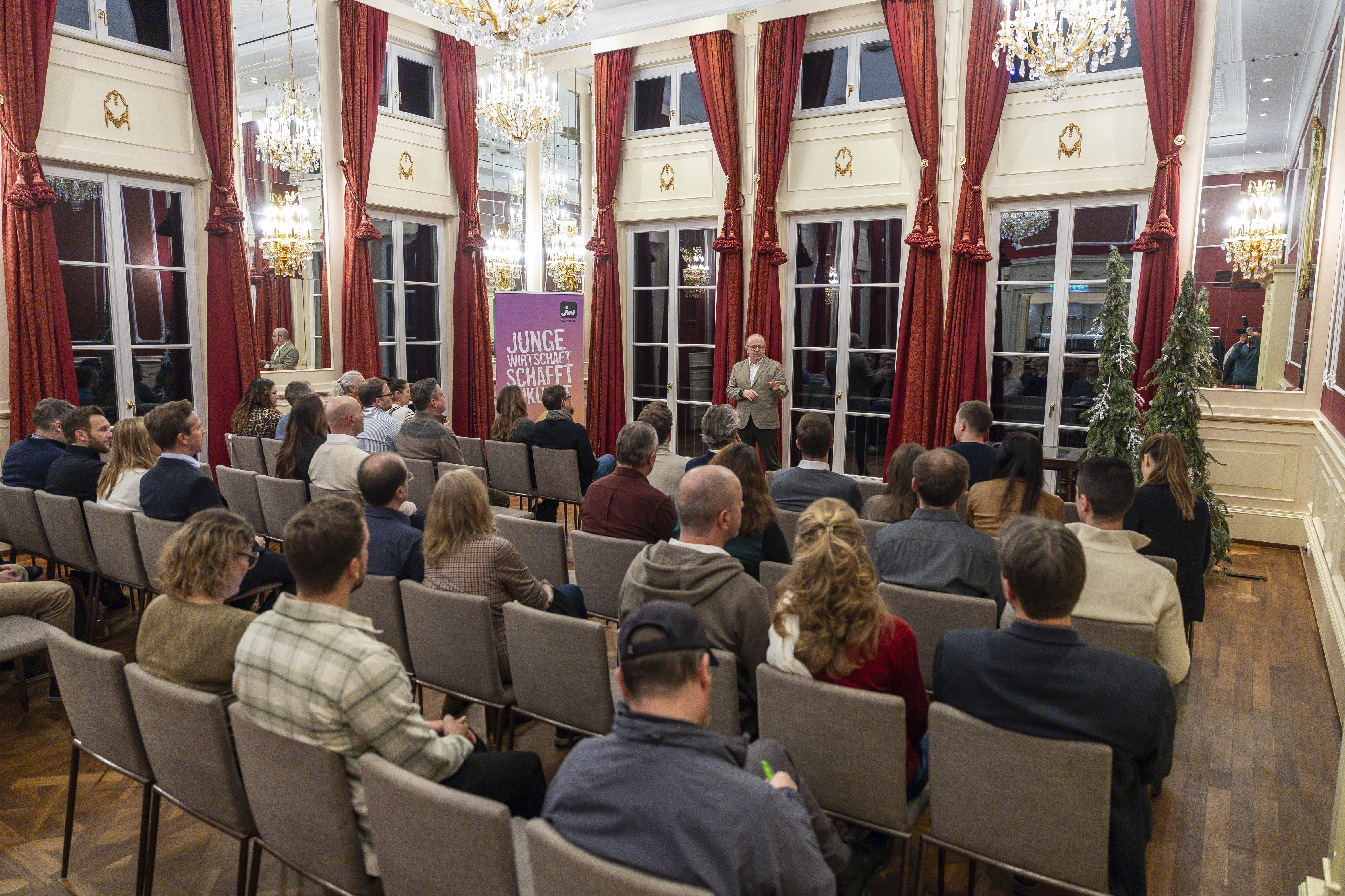 Zum stimmungsvollen Jahresausklang lud die Junge Wirtschaft zu einem besonderen Abend ins traditionsreiche Schloss Fuschl. Zahlreiche Mitglieder und Interessierte folgten der Einladung und trafen sich vor der beeindruckenden Kulisse des geschichtsträchtigen Hauses.