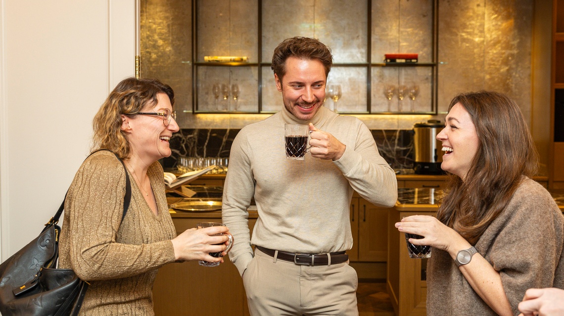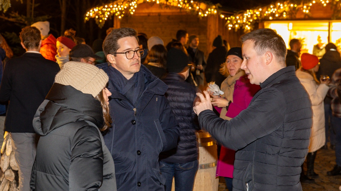 Der Abend begann mit einem Glühweinempfang in den Räumlichkeiten des Schlosses. Bei Punsch, festlicher Atmosphäre und ersten angeregten Gesprächen fanden die Gäste einen gemütlichen Einstieg in das gemeinsame Jahresfinale.