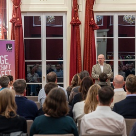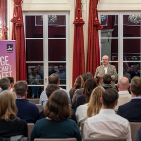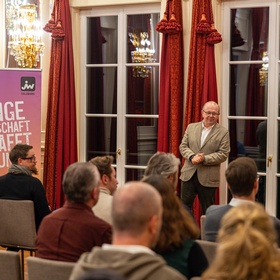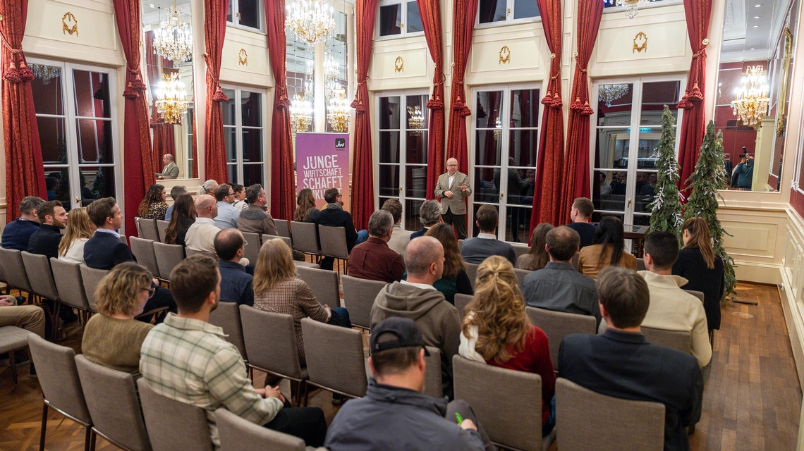Bezirksvorsitzender Christoph Handl eröffnete die Veranstaltung und begrüßte die Teilnehmerinnen und Teilnehmer. In seiner Ansprache blickte er auf ein ereignisreiches Jahr der Jungen Wirtschaft zurück und stimmte auf die kommenden Programmpunkte ein.