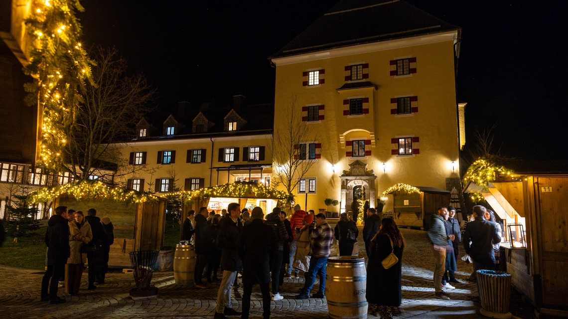 Der Abend klang in stilvollem Ambiente am Christkindlmarkt des Schlosses Fuschl aus – mit Netzwerken, Snacks, Drinks und vielen inspirierenden Gesprächen. Die besondere Stimmung des Schlosses Fuschl bot den idealen Rahmen, um Kontakte zu vertiefen, neue Verbindungen zu knüpfen und gemeinsam das Jahr ausklingen zu lassen.