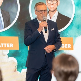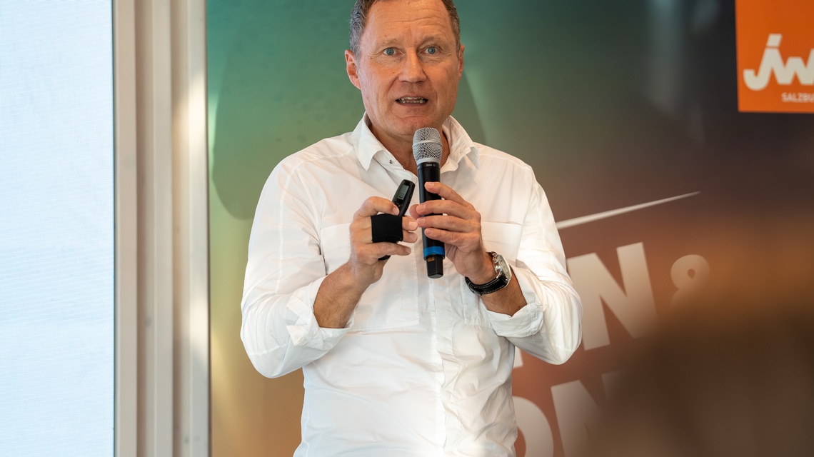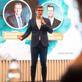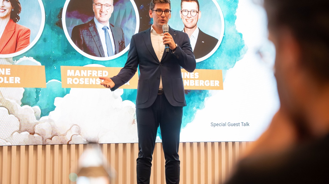 WKS-Vizepräsident KommR Manfred Rosenstatter ermutigte die Teilnehmer, auch in wirtschaftlich herausfordernden Zeiten an ihren Visionen festzuhalten: „‘Think Big. Act Bold.‘ – dieses Motto verlangt Mut, Strategie und Leidenschaft. Deshalb sind wir heute in der Red Bull Arena am richtigen Ort.“ Er unterstrich zudem die Bedeutung von Unterstützung durch WKS, Politik und etablierte Betriebe, „damit junge Gründer spüren, dass sich Unternehmertum lohnt“.