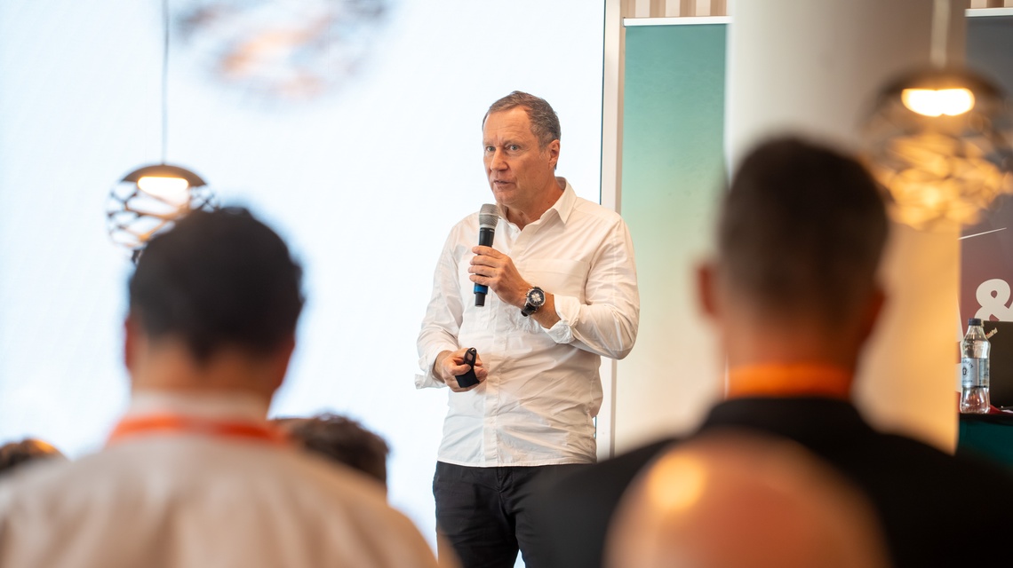 Ex-Red-Bull-CCO und Autor Manfred Hückel sprach in seiner Keynote „Islands of Excellence“ darüber, wie Weltklasseleistungen entstehen können, sowie über das Finden von gemeinsamen Werten und Missionen.