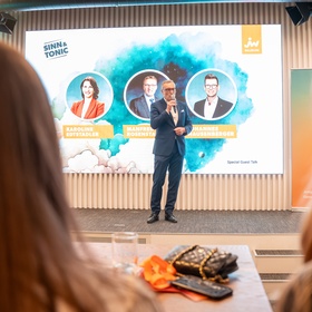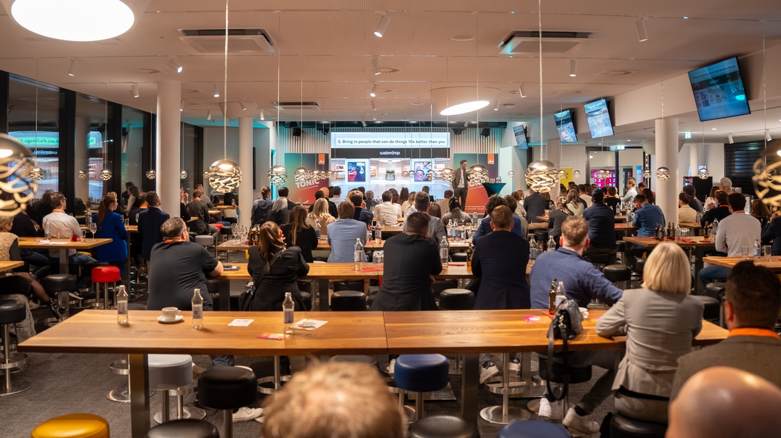 Beim exklusiven Founder Talk gab Henry Murray, Gründer von Waterdrop, persönliche Einblicke in seinen Weg vom Start-up zum global erfolgreichen Unternehmen. In seiner Keynote erklärte er, welche Trends und Tools für Gründerinnen und Gründer entscheidend sind, um eine Vision erfolgreich umzusetzen.