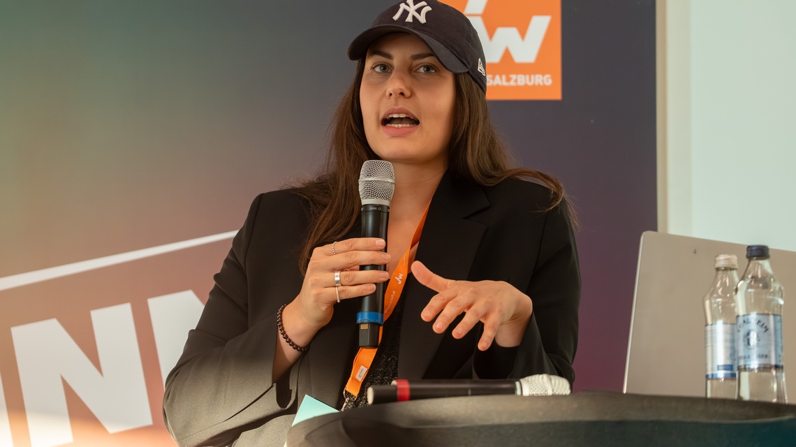 Der Panel Talk „Think Big. Act Bold.“ mit Stefan Klinglmair (Biogena), dem Fotografen Marc Stickler, Sabine Pongruber (WEME Global Salzburg), Johannes Wigand (Live-Voice) sowie die Keynote „Purpose, Impact und Mindset“ von Speakerin und Coach Daniela Fuks waren weitere Höhepunkte am Jungunternehmertag 2025.