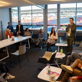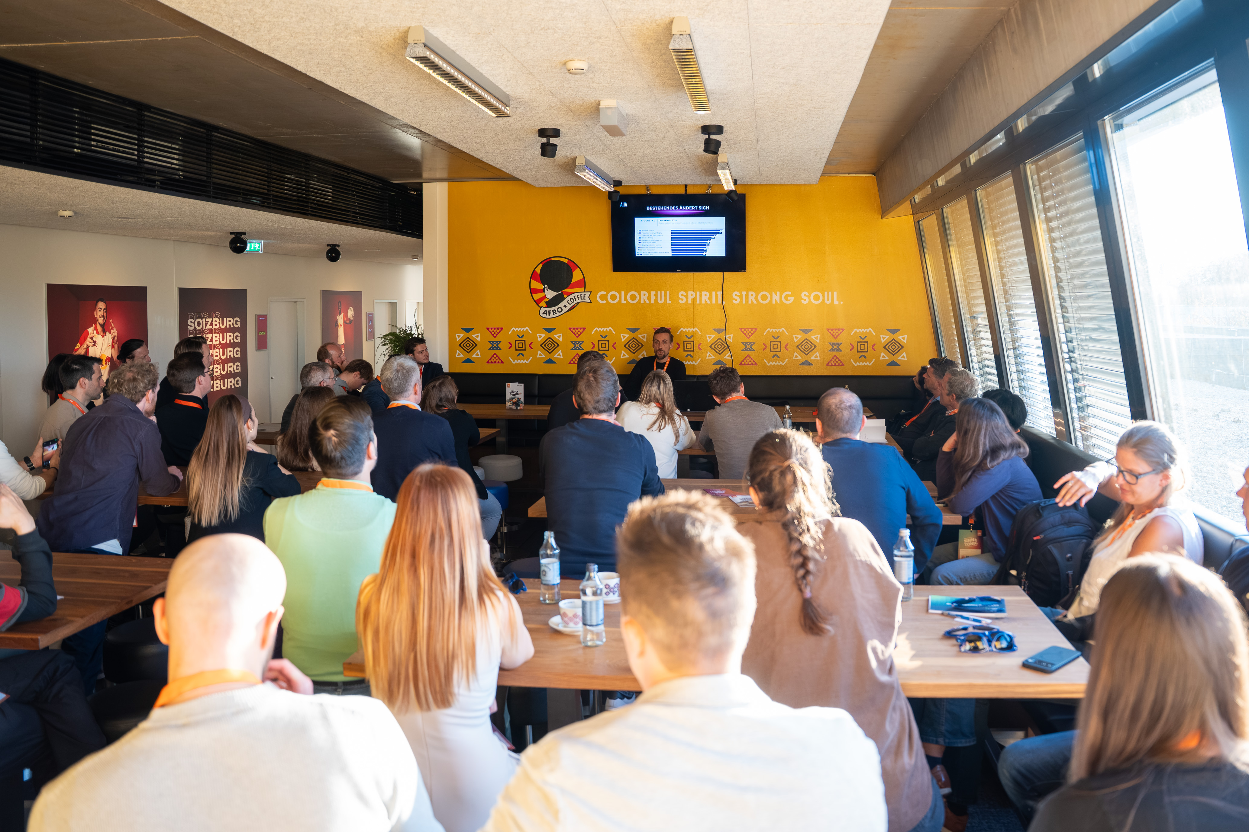 Der Nachmittag startete mit Besichtigungen der Betriebe LOOP New Media, Salzburger Flughafen, M. Kaindl und Commend International. Im Anschluss daran bekamen die Teilnehmer auf Wunsch einen Einblick hinter die Kulissen des FC Red Bull Salzburg und in die Welt des Spitzensports.