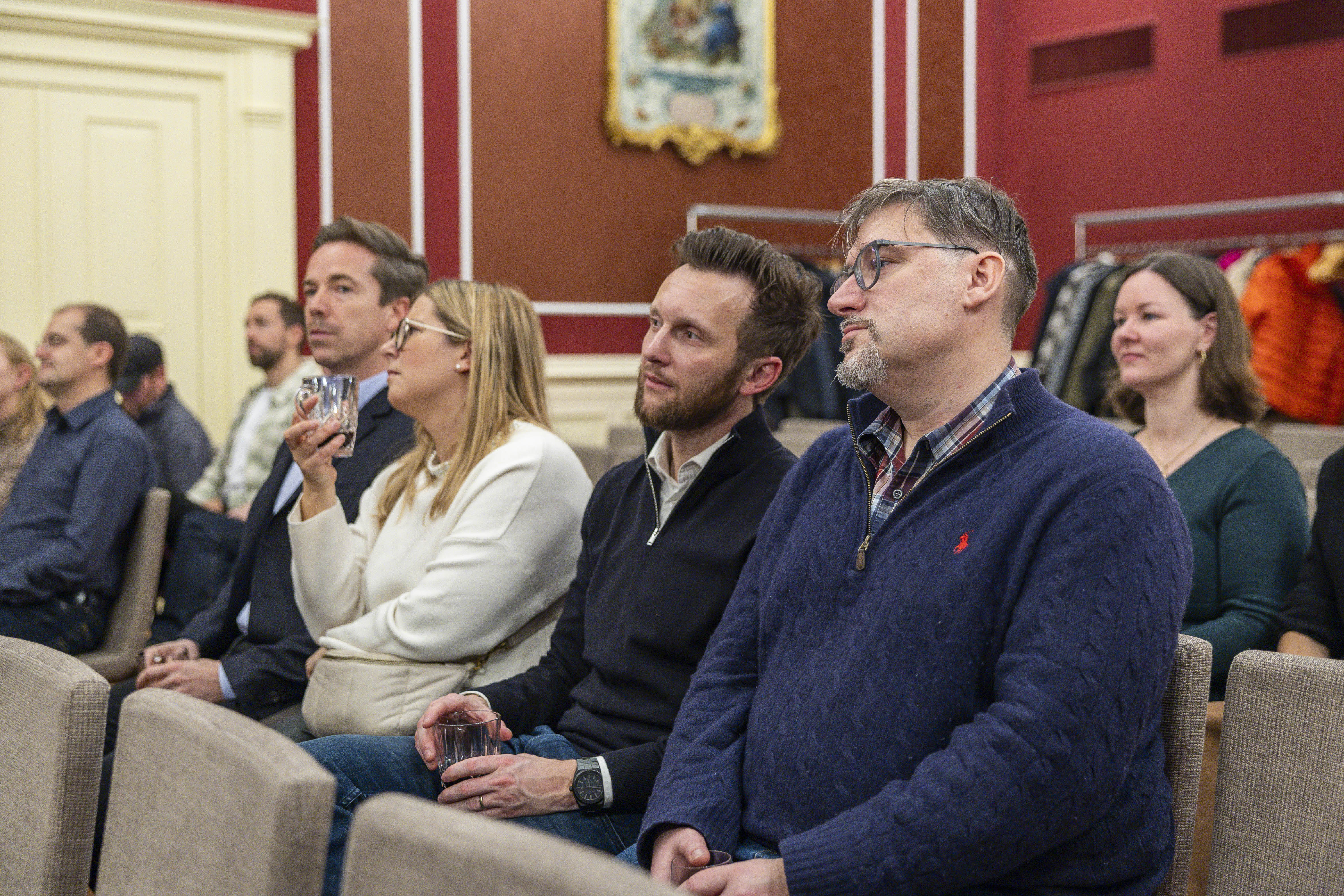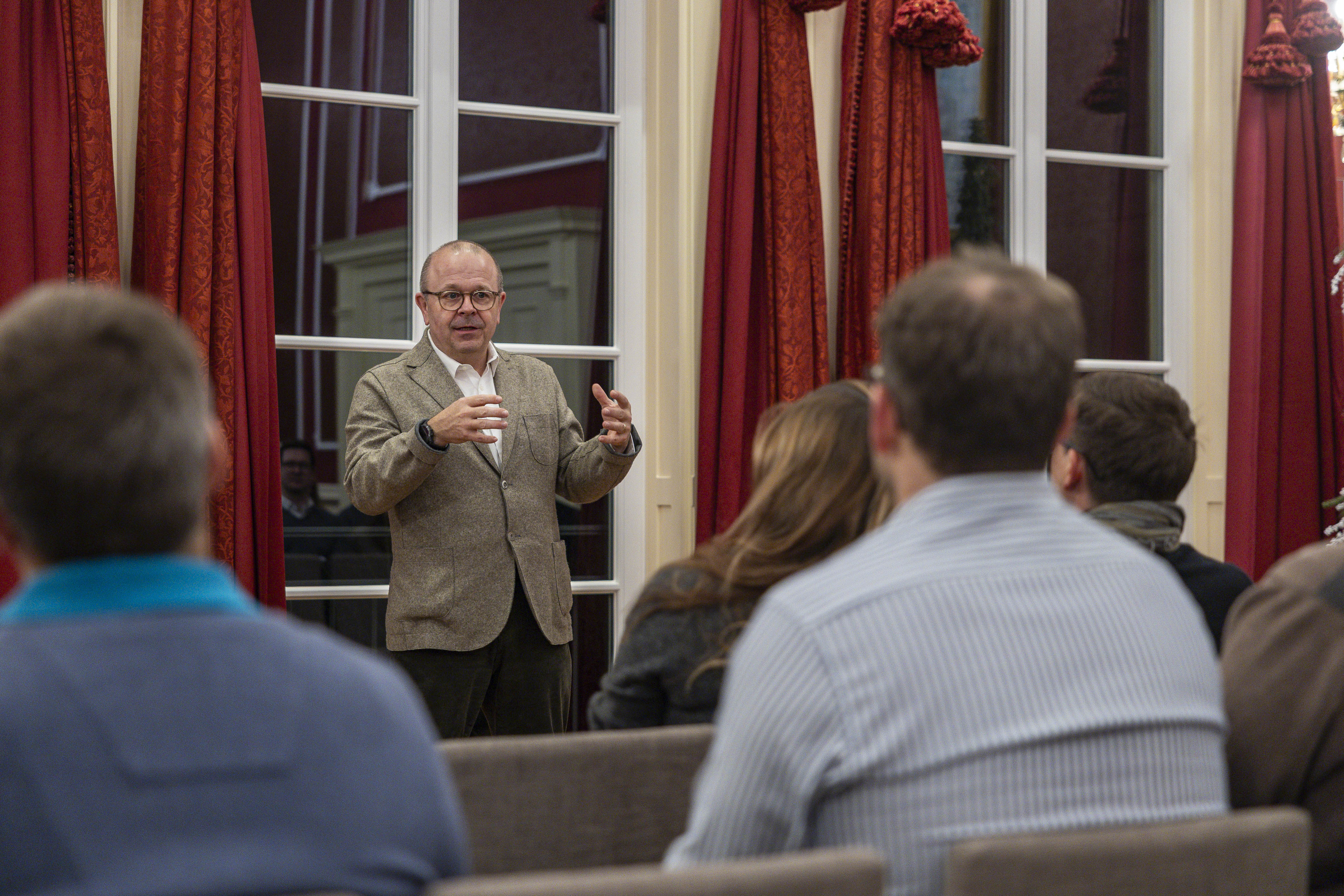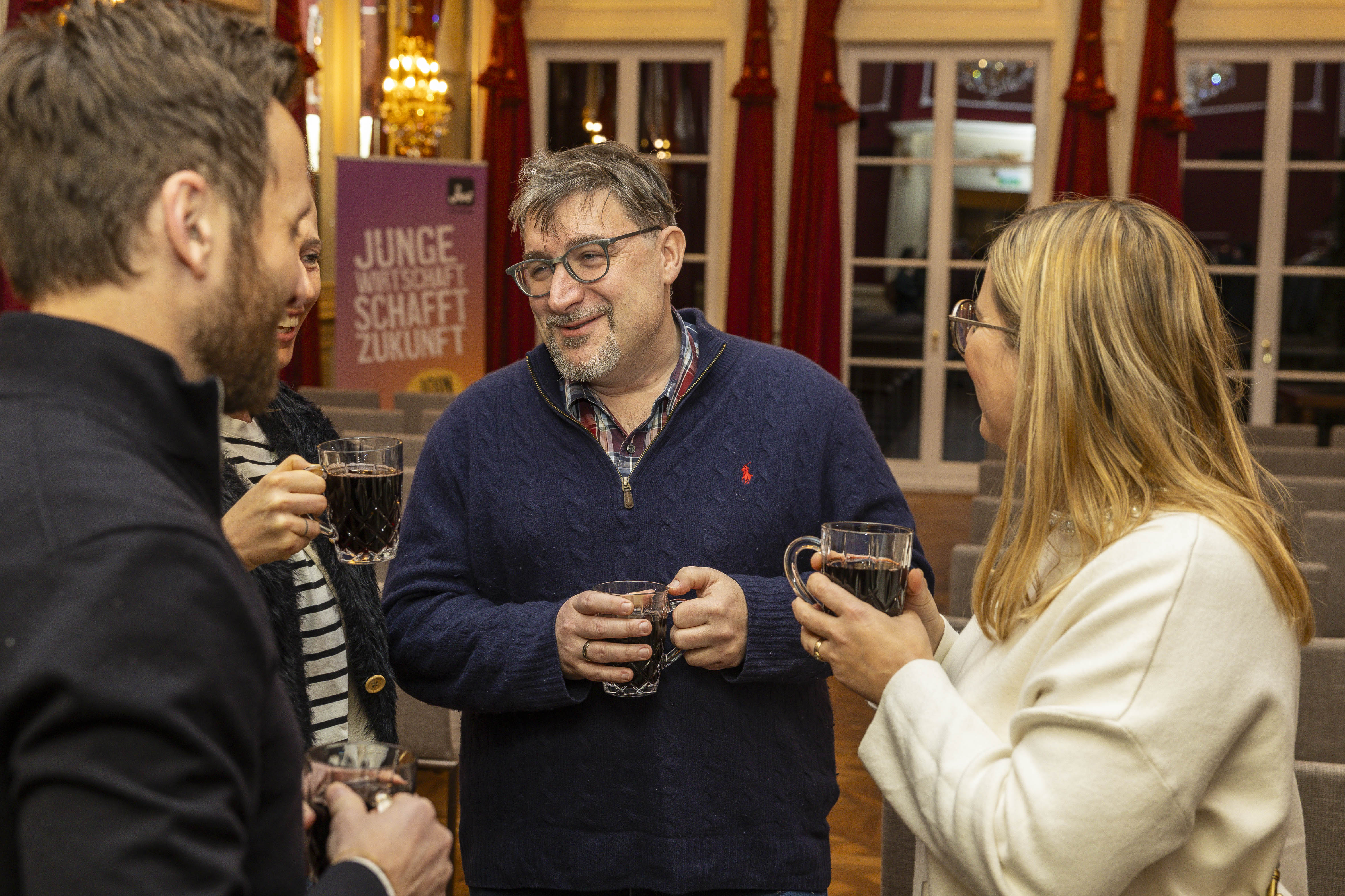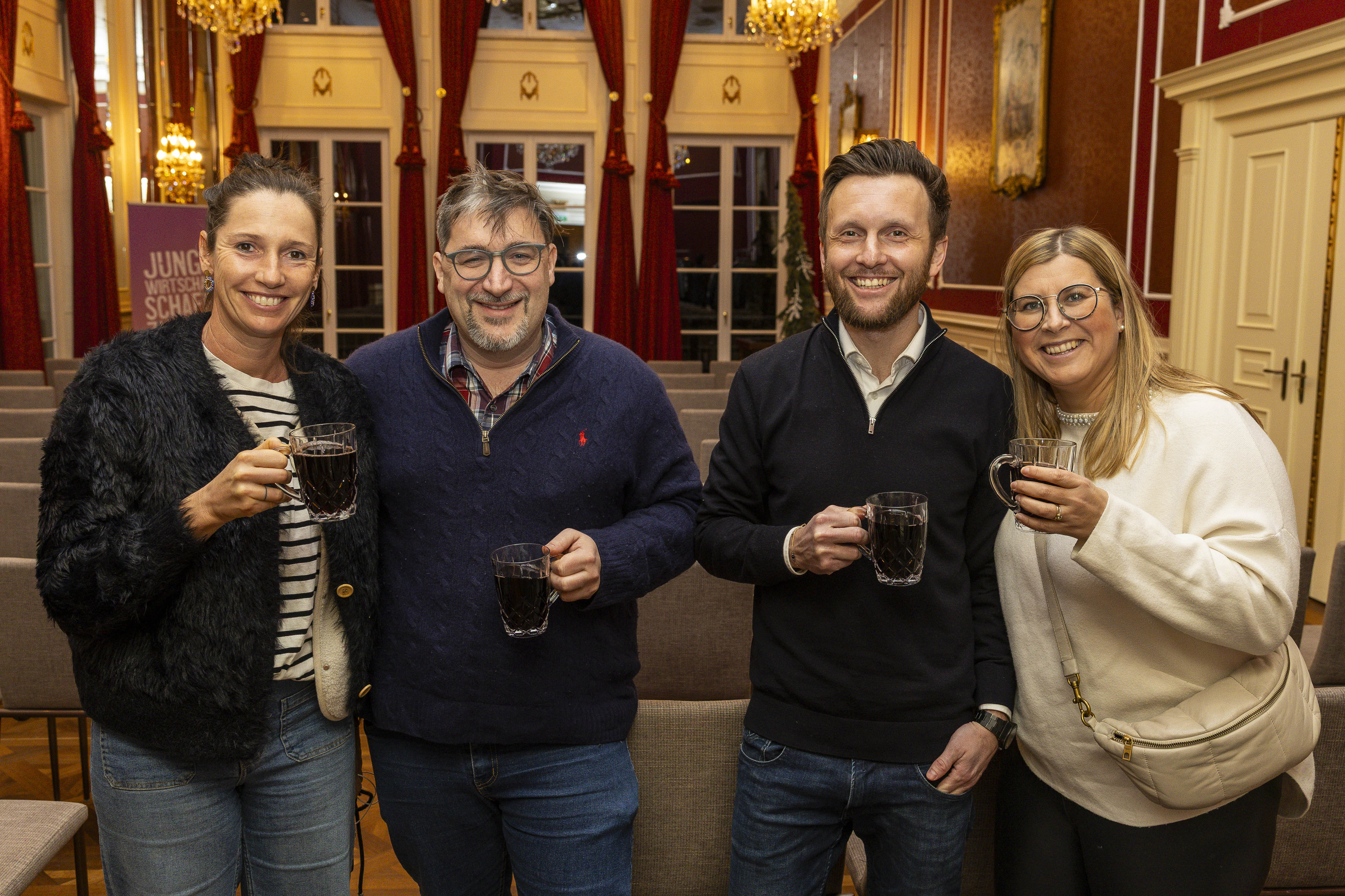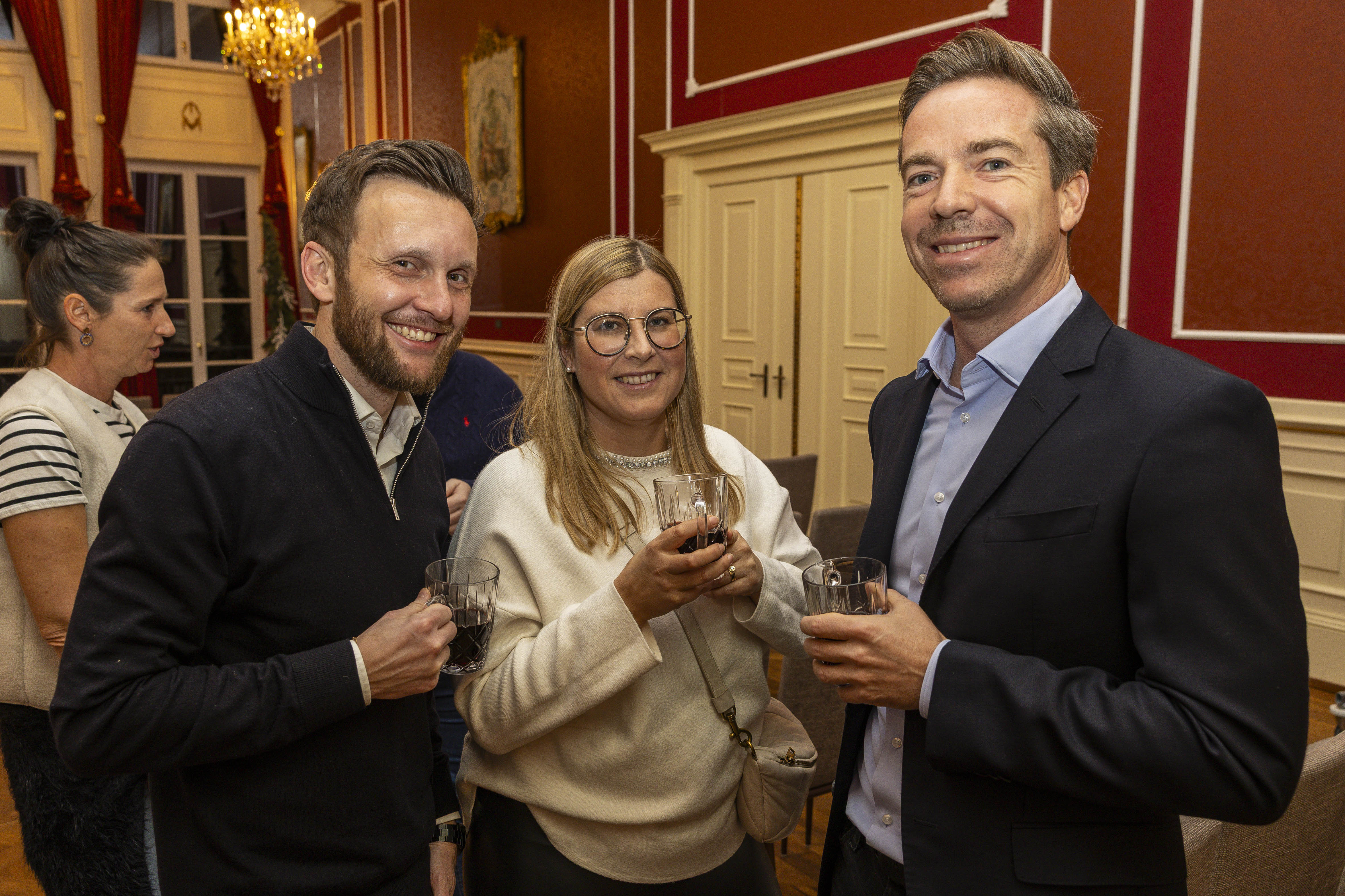 Der Abend begann mit einem Glühweinempfang in den Räumlichkeiten des Schlosses. Bei Punsch, festlicher Atmosphäre und ersten angeregten Gesprächen fanden die Gäste einen gemütlichen Einstieg in das gemeinsame Jahresfinale.