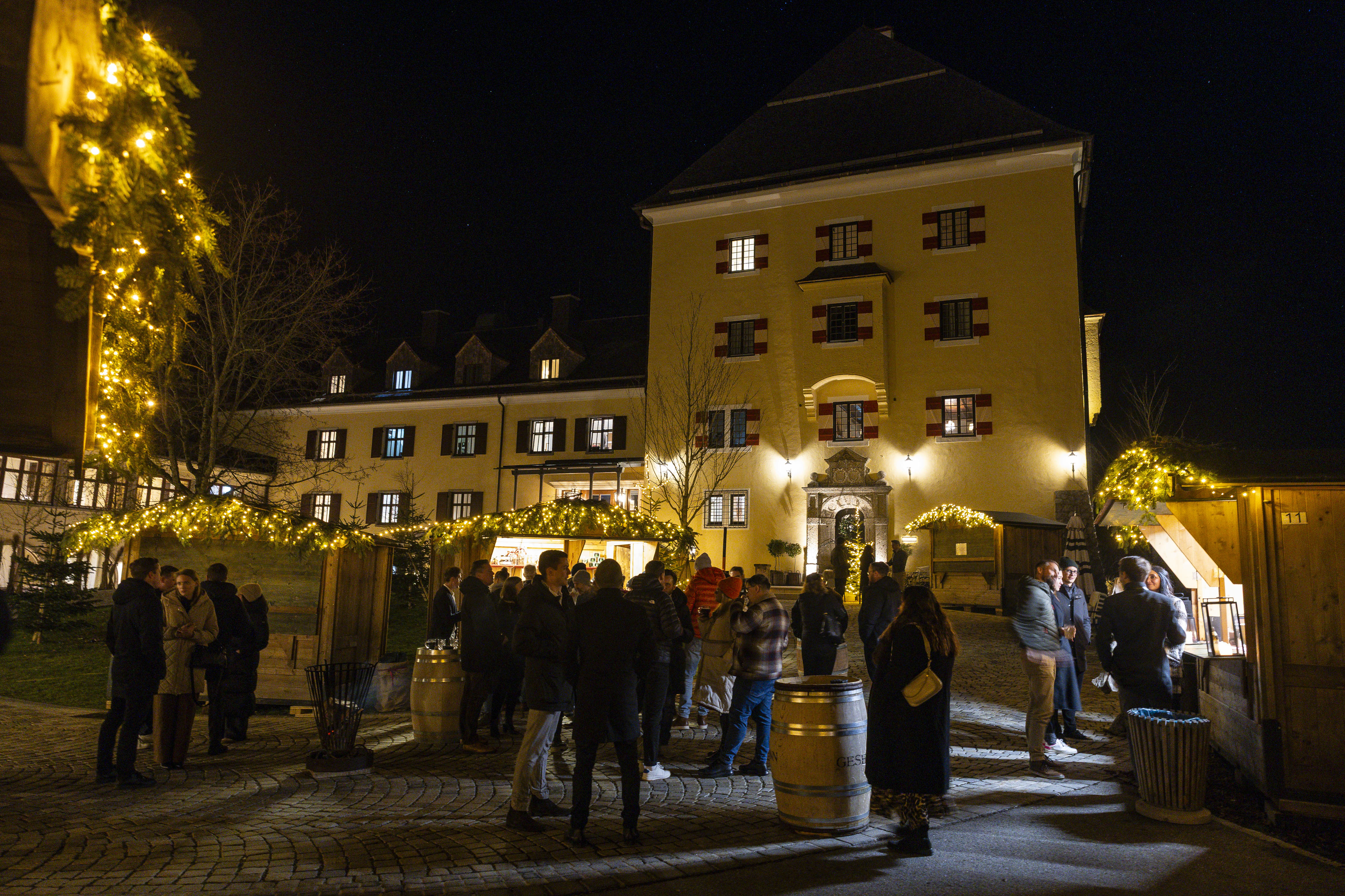 Der Abend klang in stilvollem Ambiente am Christkindlmarkt des Schlosses Fuschl aus – mit Netzwerken, Snacks, Drinks und vielen inspirierenden Gesprächen. Die besondere Stimmung des Schlosses Fuschl bot den idealen Rahmen, um Kontakte zu vertiefen, neue Verbindungen zu knüpfen und gemeinsam das Jahr ausklingen zu lassen.